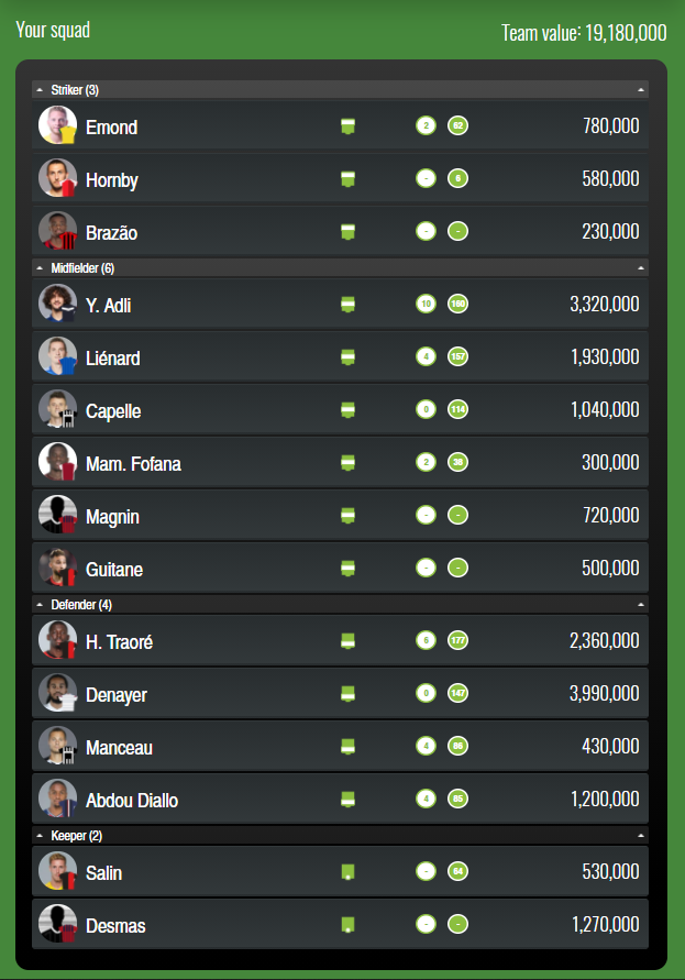 Bon bah on est alors au complet et on peut donc lancer le marché des transferts dés a présent, merci de confirmer que vous avez bien vu ce message et ou le MP que je vais vous envoyer n'a ce sujet. C'est bon pour moi! Bonne saison à tous Il faut encore que je fasse connaissance avec plein de membres de mon équipe de départ: