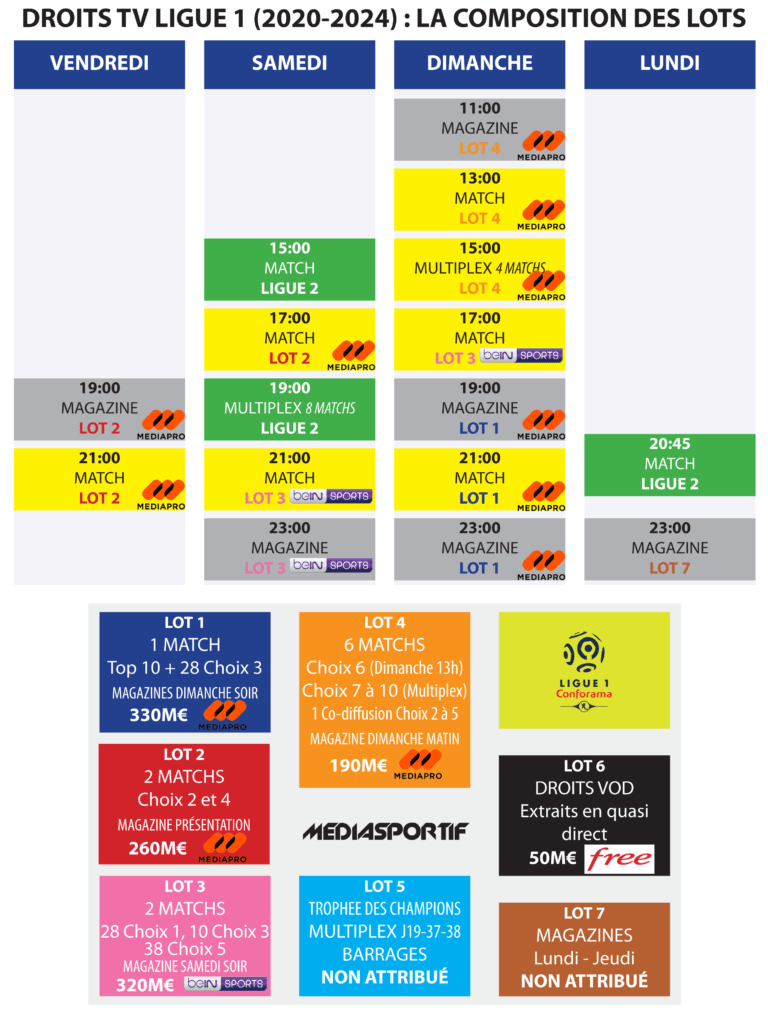 Plutot une bonne nouvelle il suffira de faire le combo SFR fai +RMC sport + Canal pour avoir le meilleur du foot, il restera juste Eurosport pour la CDF et le tennis, et le velo. Avec des promos moyen de choper ça autour de 50/60€ par mois. Tu penses sérieusement que Canal va faire des promos s'il n'y a plus de concurrence en rachetant Bein pour les championnats étrangers ? C+ et SFR sont déjà en train de s'arranger sur la programmation de l'an prochain avec des échanges de diffusion Coupe d'europe / Premier League. Ils vont surement bien faire chier MediaPro qui n'a pas de chaine pour la diffusion de la L1 à partir de l'an prochain. Ca va être sympa le CFC, le J+1 et le Late sans les droits de la L1. Pour rappel, l'attribution des lots |