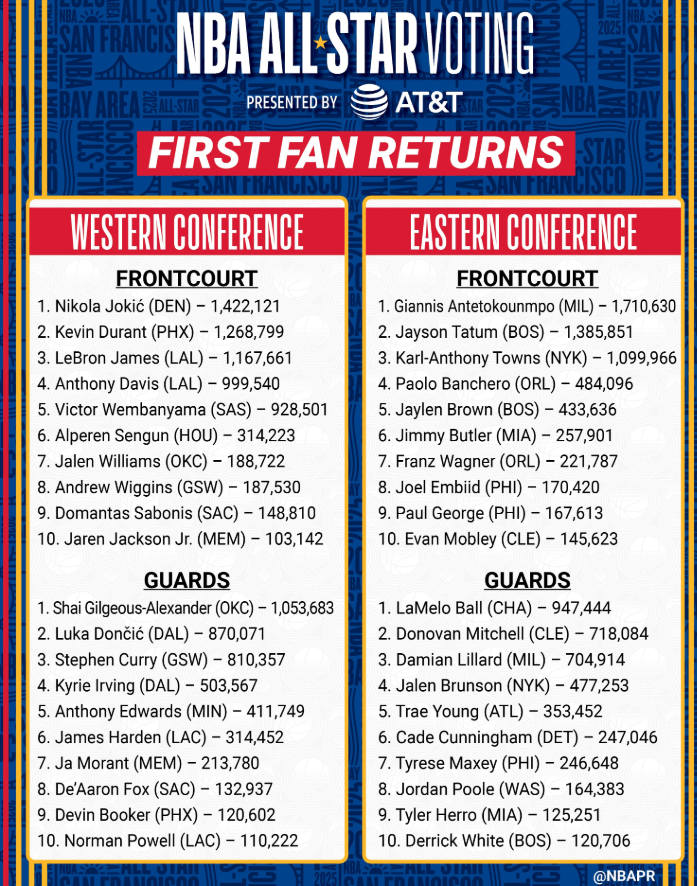 Ça a de plus en plus de gueule mais les guards à l'est c'est chaud Ouest : Doncic SGA Jokic Wembanyama Sabonis Est : Giannis Barrett Wagner Mathurin Coulibaly |