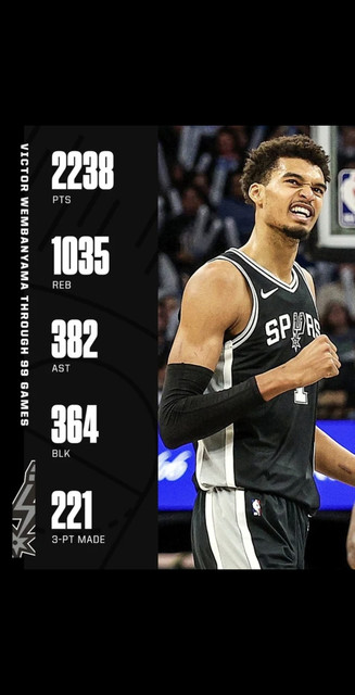 San Antonio ça va gagner à Denver maintenant wemby qui stat en mode Jokic même avec 5 fautes il a influencé le game pour la win Le jour où on lui trouve un pivot remplaçant pour le faire souffler sans que l'équipe en souffre, ça va aligner les victoires. Superbe performance de sa part. |