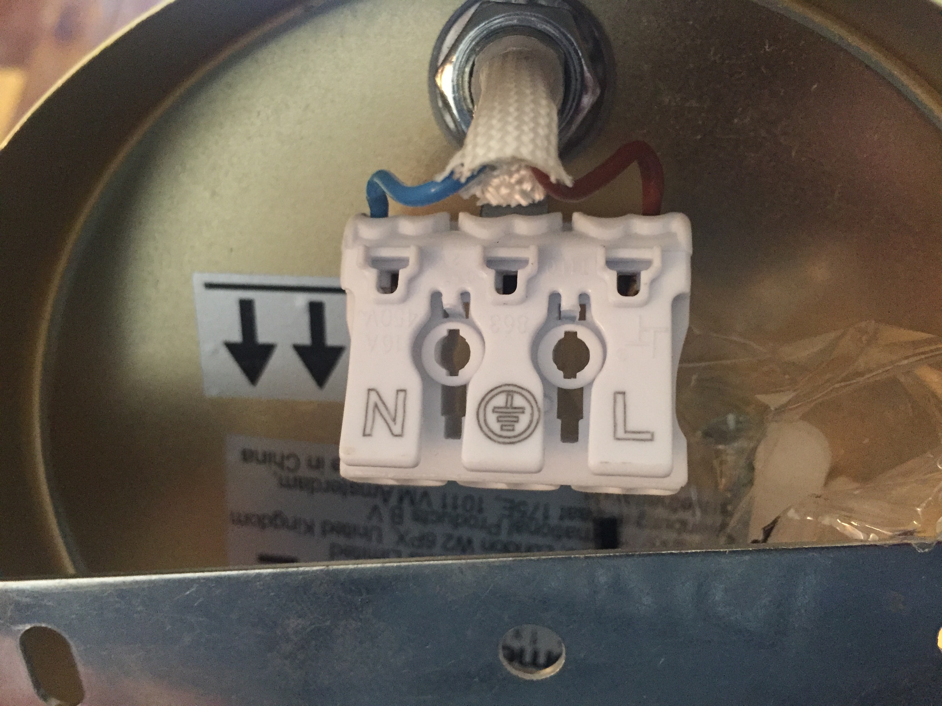 Au passage, mais vu d'où on part ça ne semble pas évident, les fils qui sortent du mur ne doivent pas servir à maintenir mécaniquement la lampe. Ils n'apportent que le courant a brancher dans le domino de la lampe. Mais honnêtement fais toi aider car c'est inquiétant.