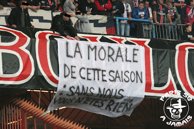 JTAH a raison. Et pour le délire des Tigris, il me semble que s'était en réponse au "Ici ça pue, ici c'est gris, ici c'est Paris" du CU, lors du match aller. Yes je pense que c'était en cette réponse.....mais je suis tatillon et cette phrase avait été sortie en Coupe en janvier. |