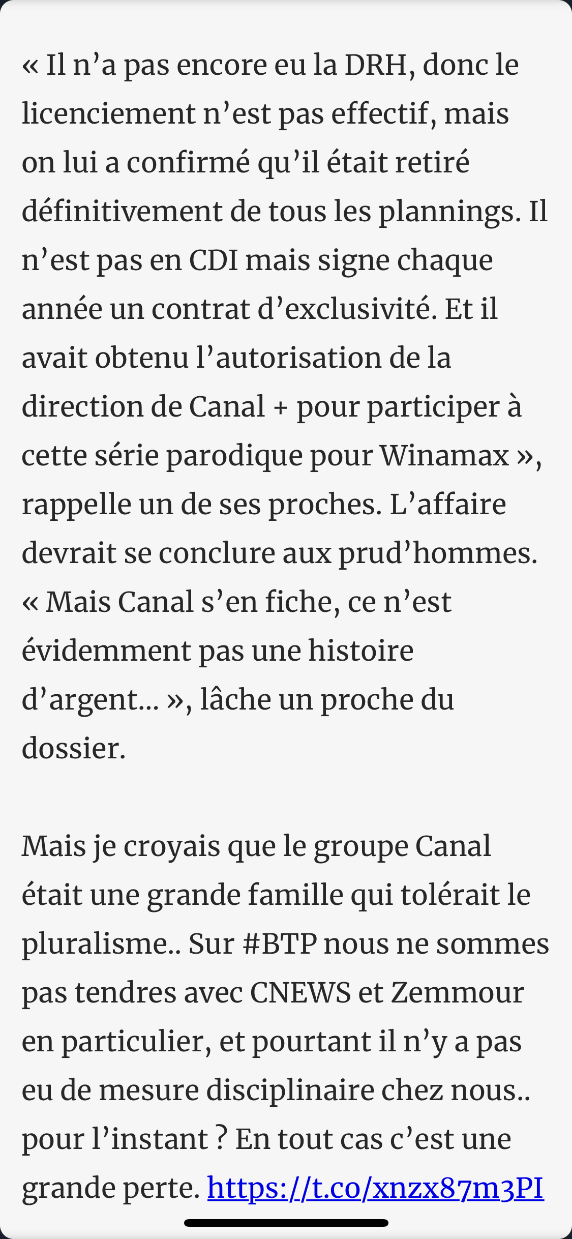 Je pense qu'il faut arrêter de penser sous le prisme du Canal d'avant. C'est un sous-TF1, maintenant, il n'y a plus grand chose d'intelligent ni de subversif dans leur chaîne.