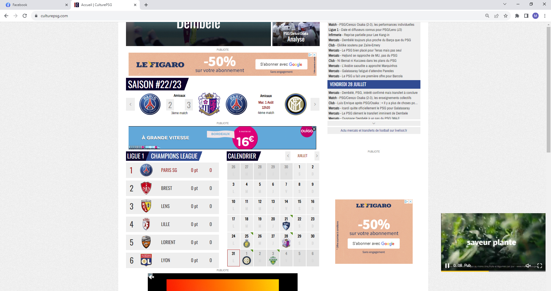 Je sais pas si c'est un bug ou pas et donc si c'est le topic adapté, mais l'article du jour sur Mbappé (https://www.culturepsg.com/news/club/derniere-repetition-avant-le-real-pour-mbappe/41087) n'apparaît pas dans les news du site. Il n'est présent que dans la liste des tweets.