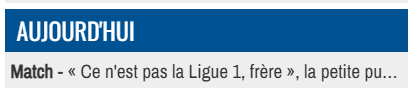 ![]() Alors je sais pas si c'est le "petite" qui est de trop, mais la manière dont est coupé la phrase, pendant un instant j'ai cru que le rédacteur avait pété une durite et mon esprit a imaginé un titre « Ce n'est pas la Ligue 1, frère », la petite pute Van Dijk répond à Campos dans les vestiaires |