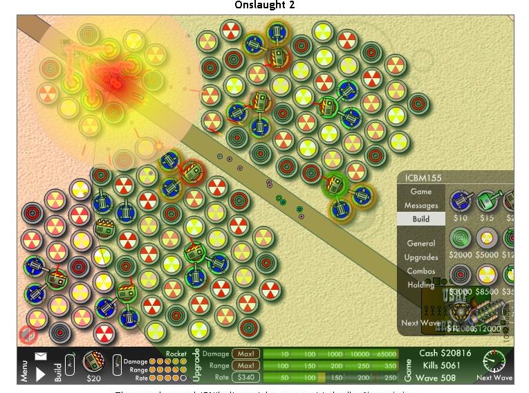 Celui là peut te passer 1h30-2h facile Onslaught 2.2 Il y a une liste des combos possibles avec les différentes tourelles (jesaisplusou). C'est un screen quand je jouais à l'ancienne version, ils ont rajouté des trucs pour fusionner les tourelles et tout. Vers la 250ème vague, tu peux commencer à partir pisser et laisser tourner le jeu Acnée mechanical commando battle gear J'en suis à la 402eme |