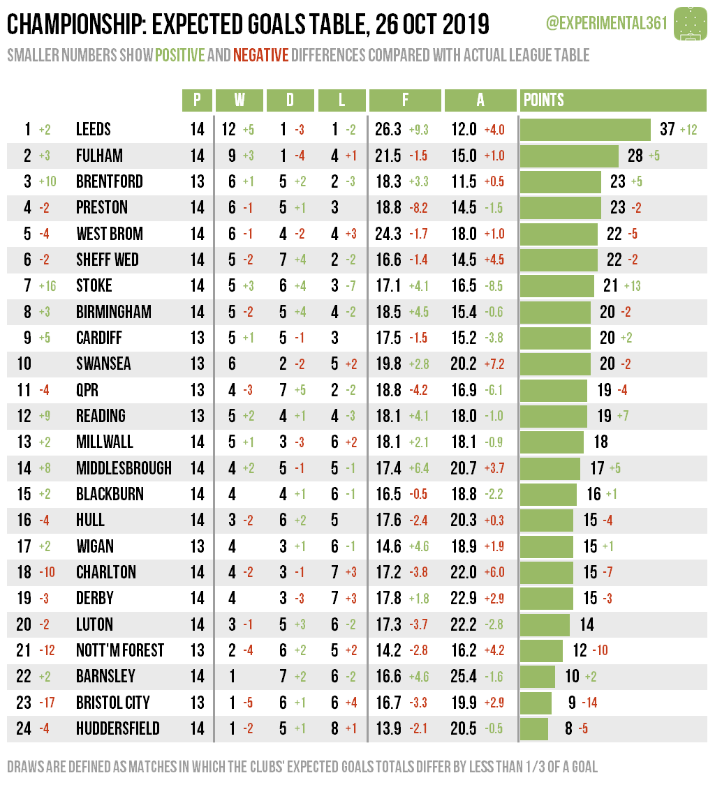 Il y a un truc qui m'échappe. Leeds a 8 match gagné pour 8 match joué mais tu parle de match nul. Le classement n'est pas à jour ? Comme le dit Rjay c'est le classement en fonction des xG,ils devraient avoir 7 points d'avance sur le 2nd et 9 sur le 3ème le classement réel et moins flatteur: ![]() La saison dernière il aurait du finir 1er avec 102 points et ont fini 3ème avec 83 points. Les xG ça traduit une domination,une maîtrise et le fait de se créer des situations de but après les résultats c'est une question de réalisme dans les 2 surfaces est là c'est autre histoire avec Leeds et plus généralement avec Bielsa. -------------------- j’ai eu le même discours pendant toute ma vie. Chacun choisit en fonction de sa sensibilité.