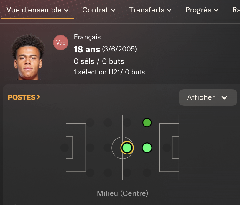 Le meneur de jeu avancé peut évoluer milieu de terrain ou milieu offensif. Tu es sur de bien le faire jouer au poste demandé ? Merci pour ta réponse. J'ai un doute maintenant du coup. D'après ce que je vois ça a l'air d'être milieu centre avec la position de meneur de jeu avancé. ![]() ![]() Et moi je le fais jouer dans un milieu à trois en position de meneur de jeu avancé.
