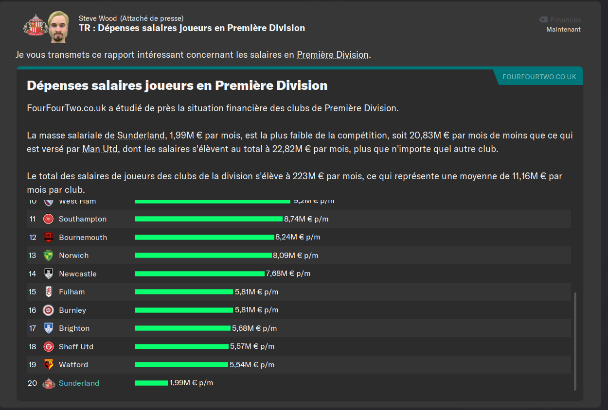 Victoire en Championship avec Sunderland, meilleure attaque et meilleure défense. 40M€ pour recruter et un budget salarial doublé, y'a moyens de faire un milieu de tableau. Tu vas recruter qui ? Si tu veux un bon petit arrière droit pas cher je te conseille O’Connor des Celtic. |