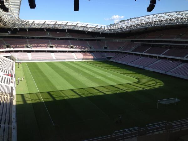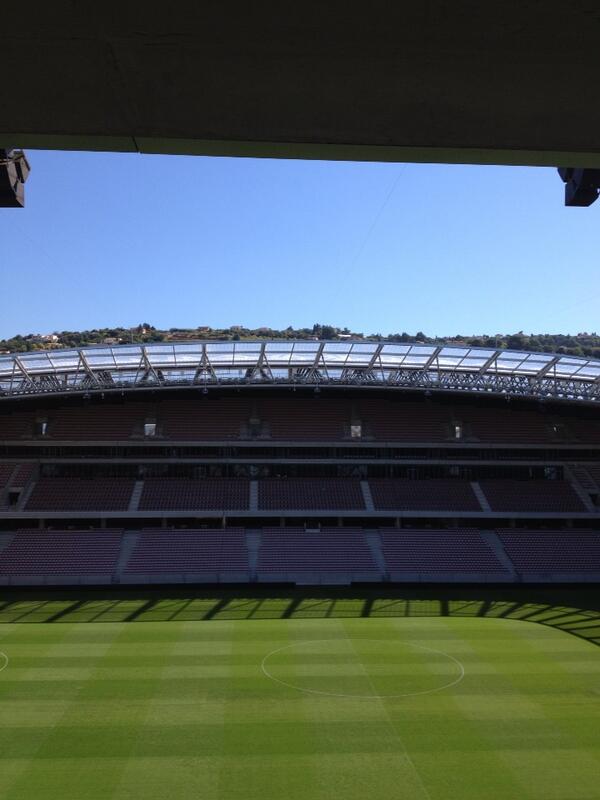![]() L'Allianz Riviera a 2h du premier match. Ils ont mis des tee-shirts rouges et noirs sur les sièges. Il rend beaucoup mieux avec des sièges foncés...et non des stickers à deux balles. |
