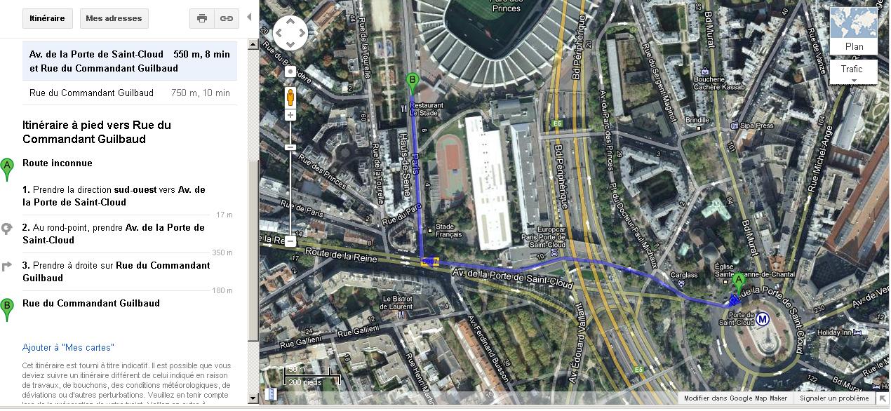 On va chipoter alors. Je viens de calculer à une dizaines de mètres près. Petite église-->au pied du Parc : 300m tout droit (400m pour auteuil, 460 pour boulogne) L13 (le plus près)-->Tribune Nord: 420m avec un escaliers. Quand tu viens du RER c'est encore plus loin, et les trottoirs sont souvent en travaux (ça durera pas éternellement certes). Dans tous les cas le parcours est moins agréable. Sachant que 120m à pied c'est un morceau dans un MP3. C'est pas la mer à boire mais c'est plus. Sachant que je suis souvent venu en RER. Presque 1km depuis l’arrêt Stade de France. 640m depuis l'arrêt la plaine-Stade de France. Et ce jusqu'à la tribune sud. Franchement, mon vécu à moi c'est plus agréable et rapide (je maintien) d'aller au parc que d'aller au Stade de France. Après je veux bien croire que pour certains c'est pas long 5 minutes, mais moi ça me saoul. De la petite église au pied du KOB, j'arrive à 550m à pied (cf pièce jointe). Et 120 mètres à pied pour une chanson, t'écoutes que les intros, c'est pas possible autrement. -------------------- A été retweeté par Gianluca Di Marzio, PRINCE des transferts, PAPE des rumeurs, OMNISCIENT du mercato, le dimanche 2 août 2015 à 00h35.