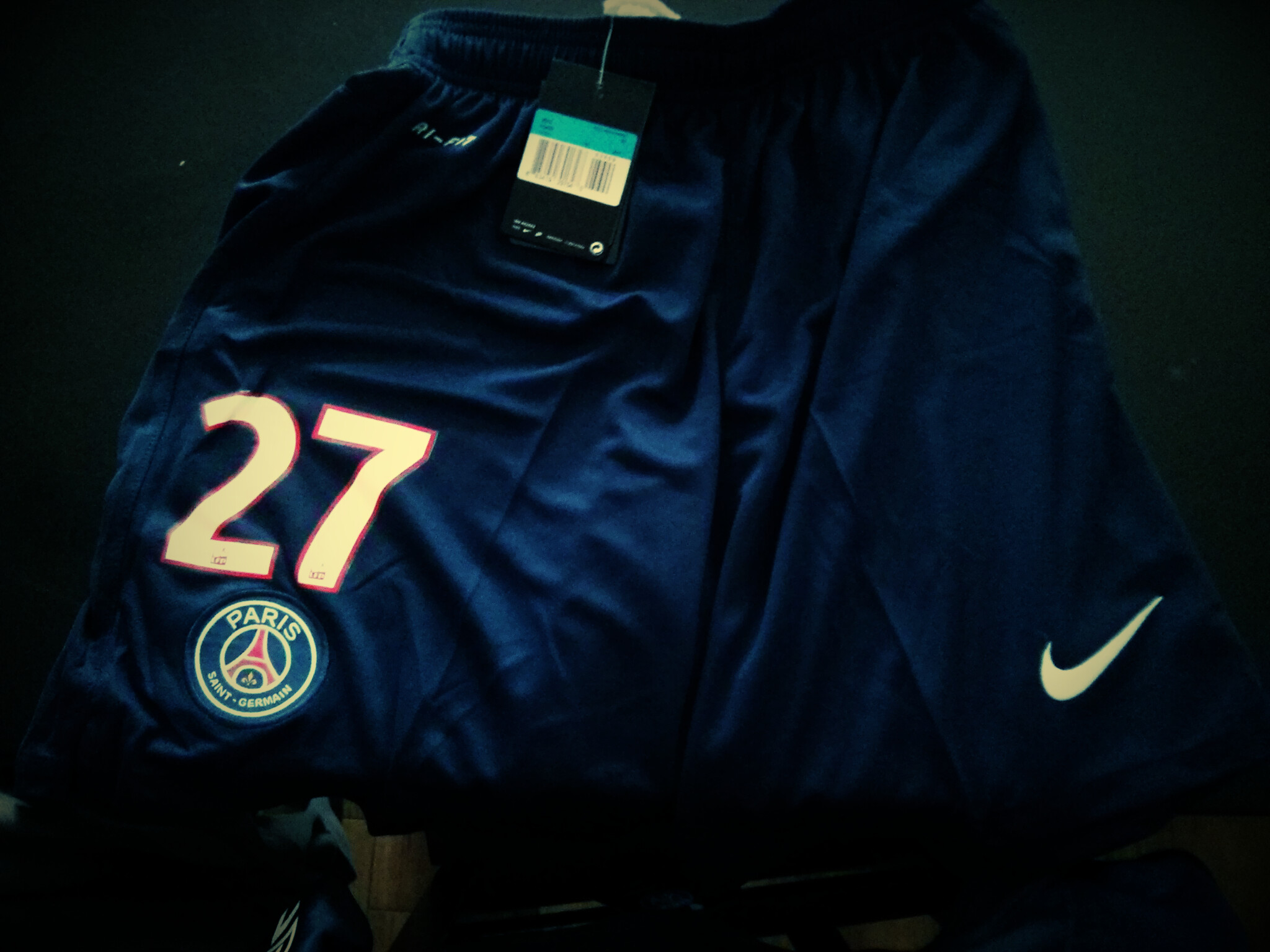 Pris des photos ce midi Très bien, j'ai tenter le S qui m'allait bien sur le maillot de l'Italie, bon c'est un peu serré mais ça passe archi bien La folie, c'est qu'en même temps j'avais pris un short, tant qu'à faire. Et Chuan m'a floqué le short aussi Je retesterai ce soir mais en attendant Sinon je crois qu'ils ont un problème avec les T au bled |