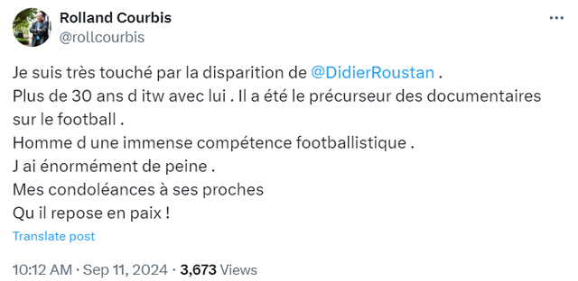 RIP Dommage de résumer sa carrière à une voix (mais quelle voix) : - Field of Dreams - La série des Jack Ryan - Conan le Barbare -------------------- « Le PSG, c’est autre chose (que le showbiz). C’est le club de l’entrain. Un vrai club populaire à mes yeux. Le club unique d’une ville immense. [...] L’histoire du PSG a toujours suivi un scénario époustouflant, plein de rebondissements. On peut l’aimer ou pas ; la réalité, c’est que ce club respire la vie. »