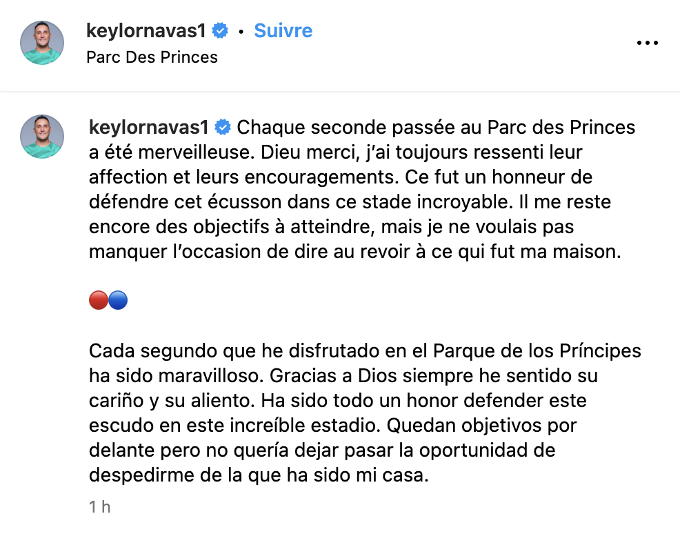 Au revoir mon bon Keylor, quand un joueur est grand, cela se voit rapidement et ce gardien a été très grand. Qu’il joue ce soir pour dire adieu. |