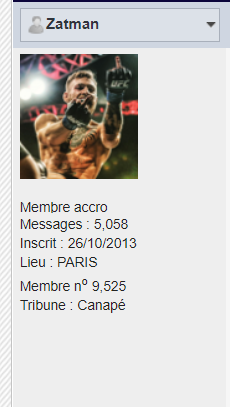 Légende ![]() ![]() ![]() ![]() ![]() Groupe : Members Messages : 15,598 Inscrit : 09/01/2009 Lieu : Rouen Membre no 167 Tribune : Canapé |