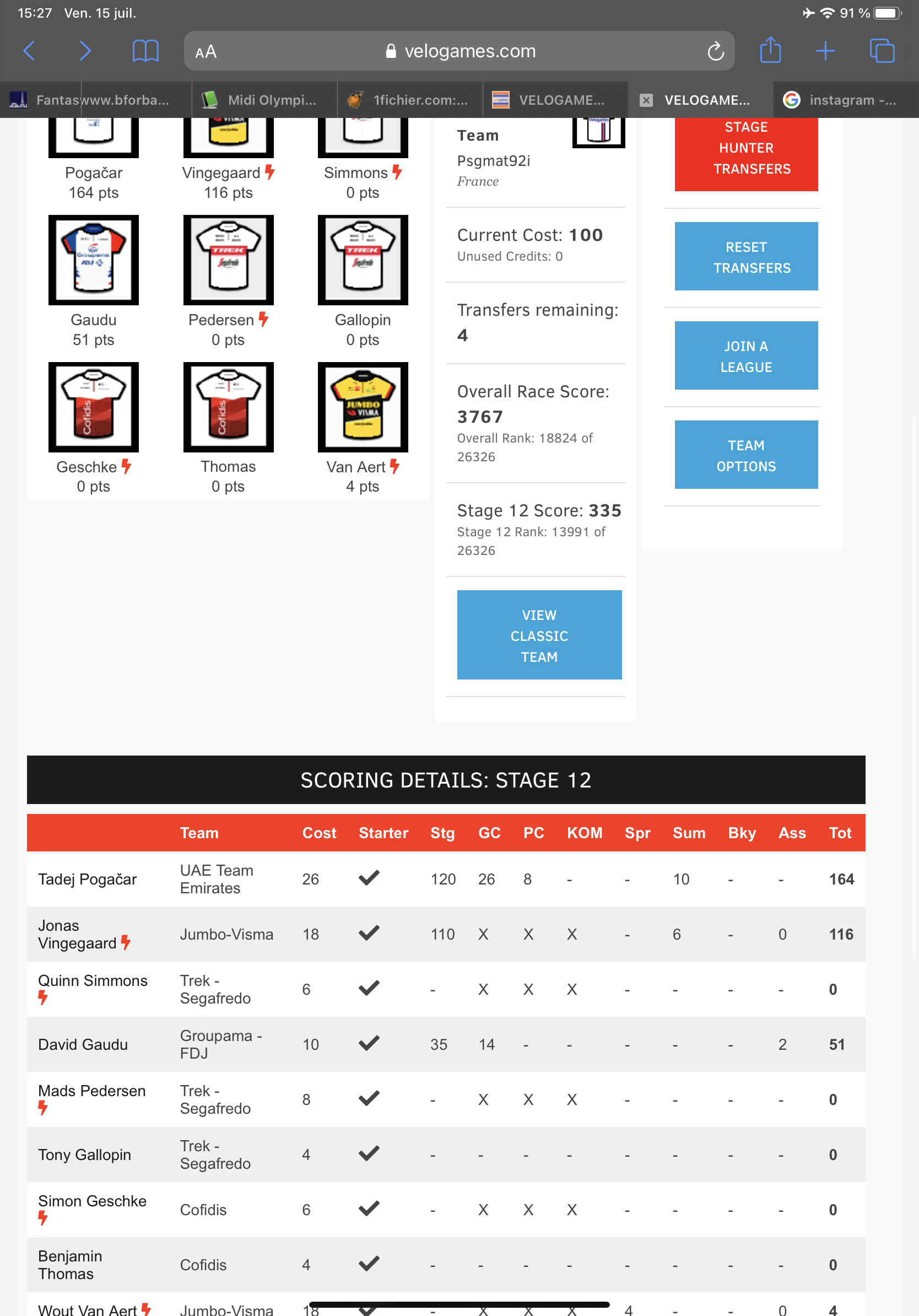 La prochaine fois je me fais pas chier : Pogacar, Van Aert voir vingegaard et que des mecs à 6 ou 4 points En espérant qu’ils ne chutent pas les mecs qui coûtent bcp de points -------------------- FLVCTVAT,NEC,MERGITVR