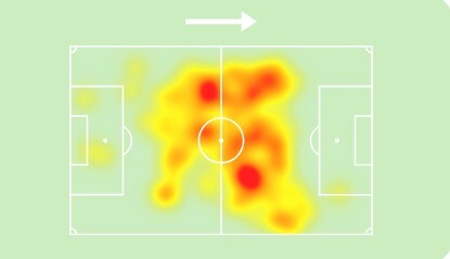 ![]() Patron. Pour avoir comparé avec celle de Warren, on constate que tous les 2 sont pour le moment derrière l'attaque, dans une sorte de double pivot (en tendance) mobile. Neves a joué un poil plus à gauche et plus haut. |