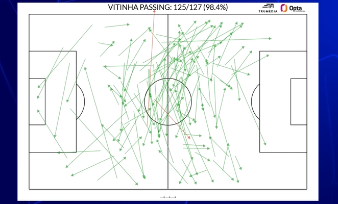 Verratti nous a tous fait rêver et ça n'enlève rien à l'amour qu'on a pour lui mais ce que Vitinha fait c'est très très fort et au dessus pour moi. Il prend aussi moins de carton et est moins blessé sur une saison et lors des grandes échéances ça permets de pouvoir compter sur lui.