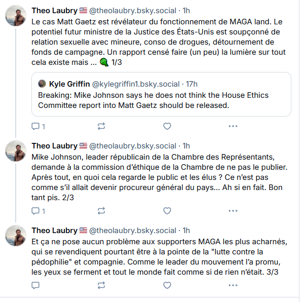 ![]() "People might call him a pedo, but he's my pedo" En passant, je dirais pas non à une balise pour intégrer les liens Bluesky. |