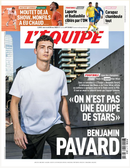 Ca m'a fait mal également, mais il reste 3 couvertures avant le match, je préfère qu'ils parlent des Français de l'Inter aujourd'hui et focus sur le PSG sur le reste de la semaine, plutôt que de sortir cette couverture vendredi ou samedi. |