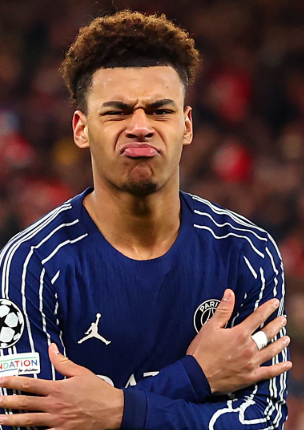 Adoré Désire Doué et son geste de la main après son but incroyable contre Villa. -------------------- Le camp du bien.