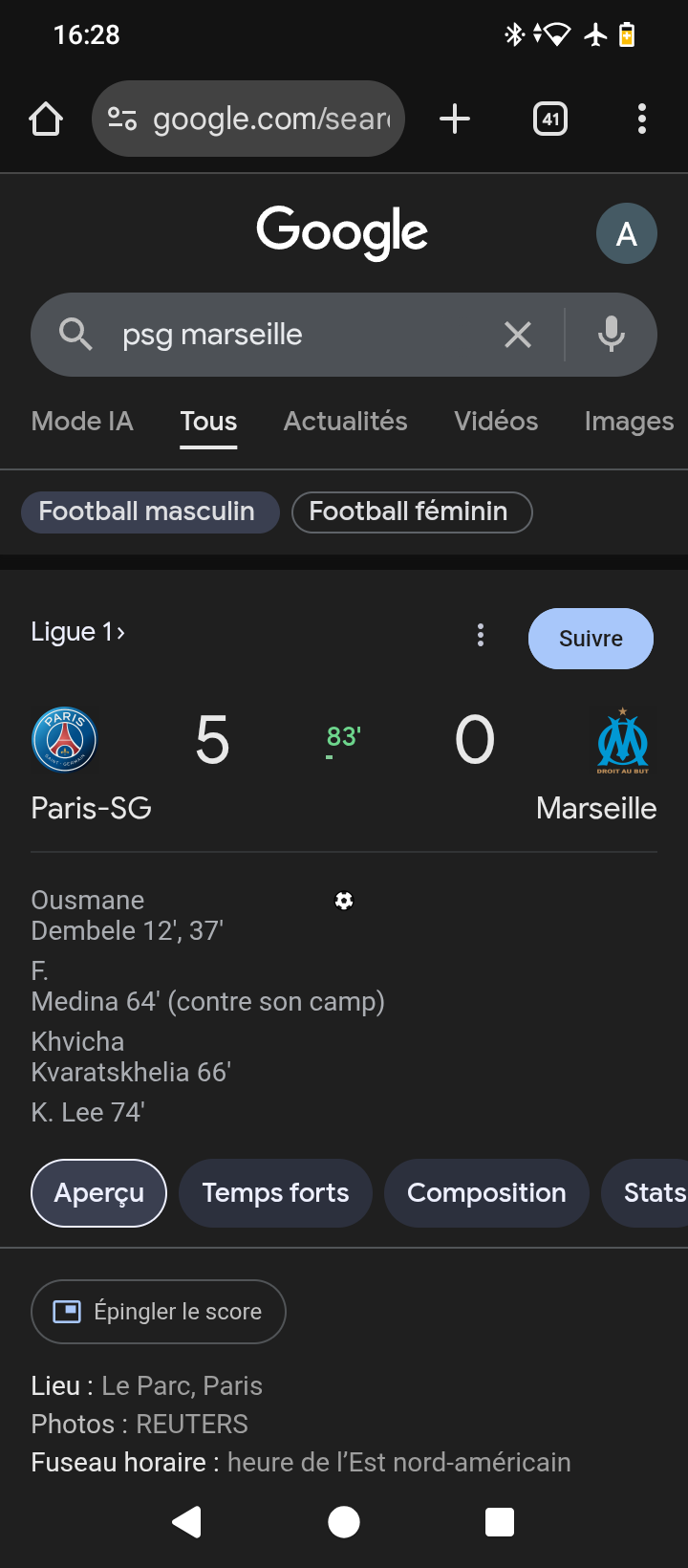 Pilier du forum ![]() ![]() ![]() ![]() Groupe : Members Messages : 12,370 Inscrit : 27/08/2014 Membre no 9,879 Tribune : Auteuil |